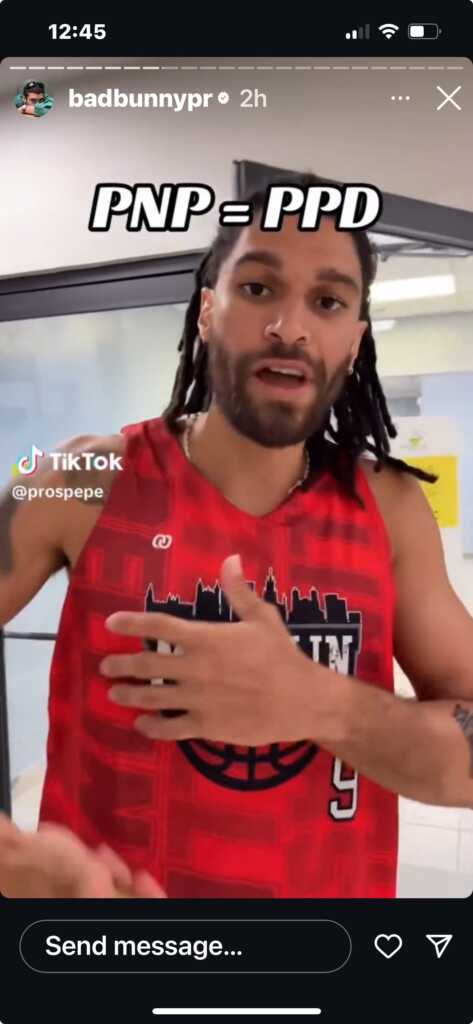 En otro de sus “stories” aparece en joven vestido deportivamente, que insta a la juventud a inscribirse. En la imagen también aparece el texto PNP=PPD, en obvia referencia al llamado bipartidismo que se ha alternado la gobernanza de la Isla.