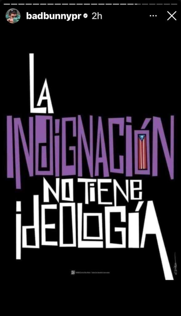 Finalmente, otra “story” era la de un estilizado arte que lee “La indignación no tiene ideología”.